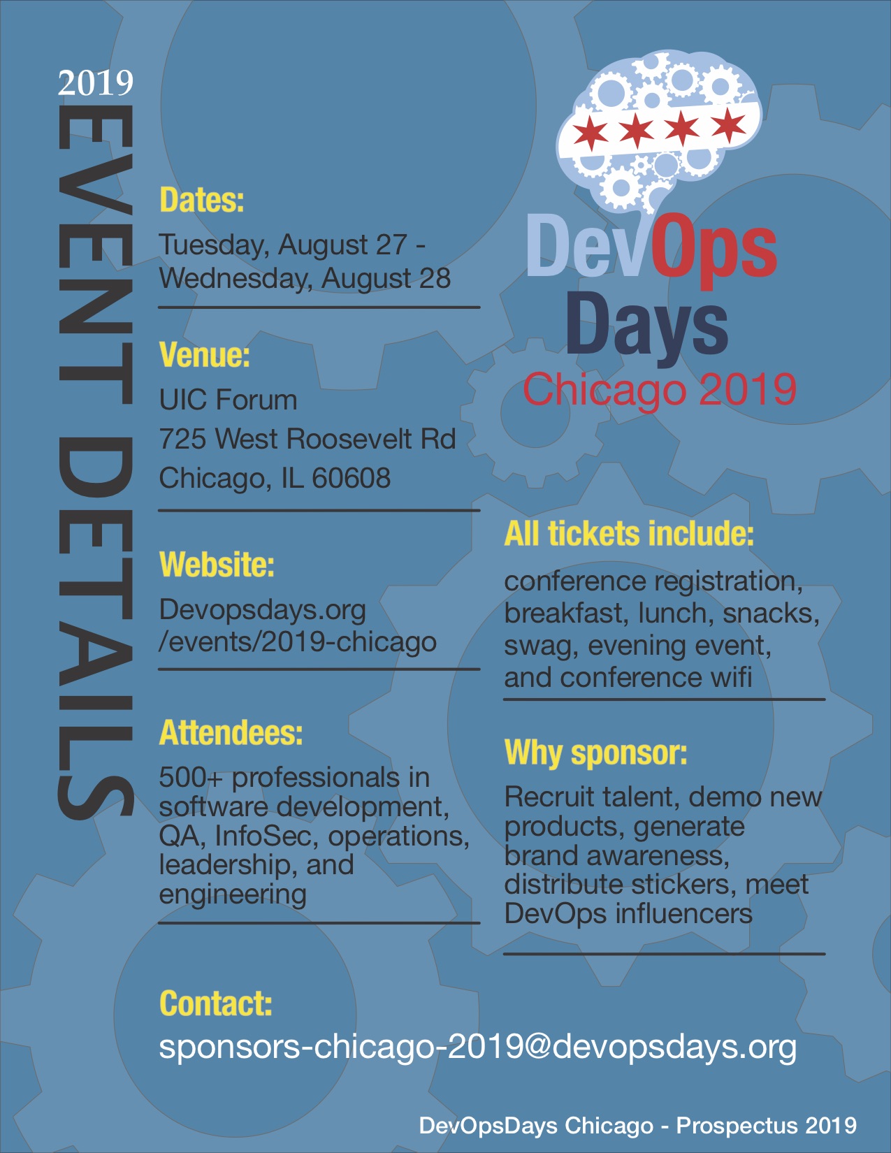 All special sponsors will have their logo displayed on the DevOpsDays Chicago website, a tweet before the conference, and a thank you during the conference. We do have some flexabilities with these sponsorships, so just ask! Email us: sponsors-chicago-2019@devopsdays.org.